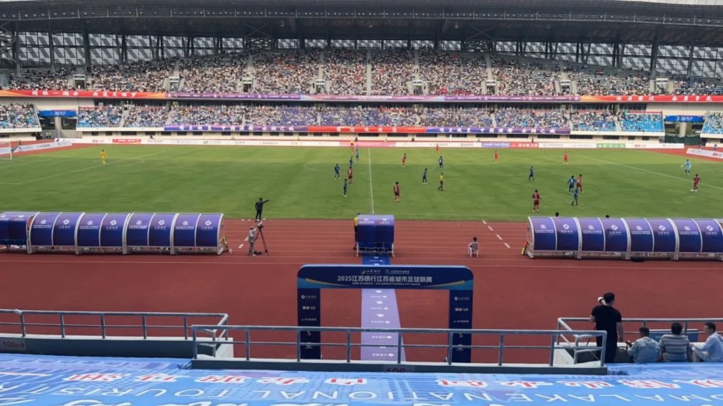 05月26日讯 江苏省城市足球联赛第二轮比赛,宿迁队坐镇主场1-1的战平徐州队。这是下午场比赛(3点),宿迁市奥体中心体育场12267人现场观战。